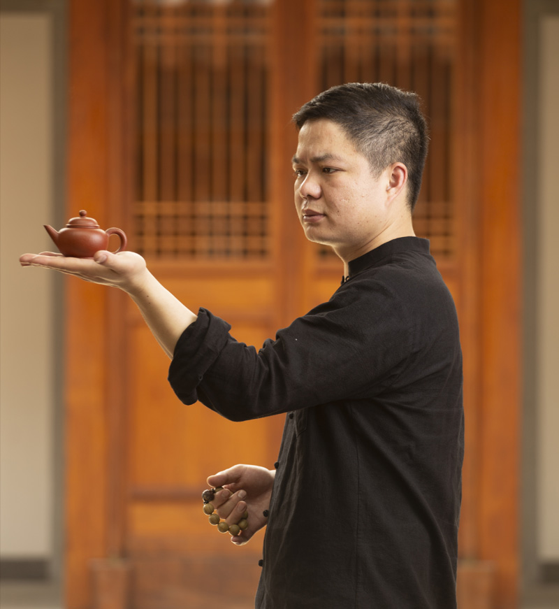 吴义永身上有很多标签,年轻的广东省工艺美术大师,谢华大师的首席大弟子,斗壶大赛“壶王”……